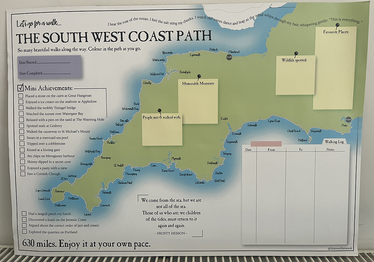 Really great SWCP map. Really good communication too. Just got to work out how to frame it, while still getting access to tick off my trips! Looking forward to using it very soon… thanks